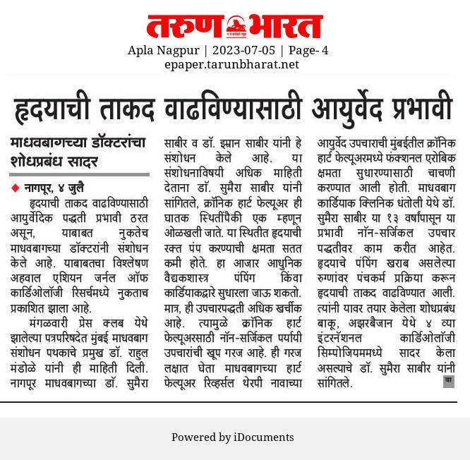 Dr. Rahul Mandole and Madhavbaug Research team has conducted more than 66 Researches to understand the science behind the Ayurved usefulness in management of chronic heart diseases and Diabetese.