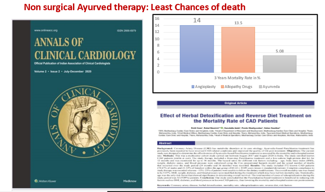 proved through the most advance form of non invasive coronary angiography well known Ayurved and Cardiology journals accepted the evidences.